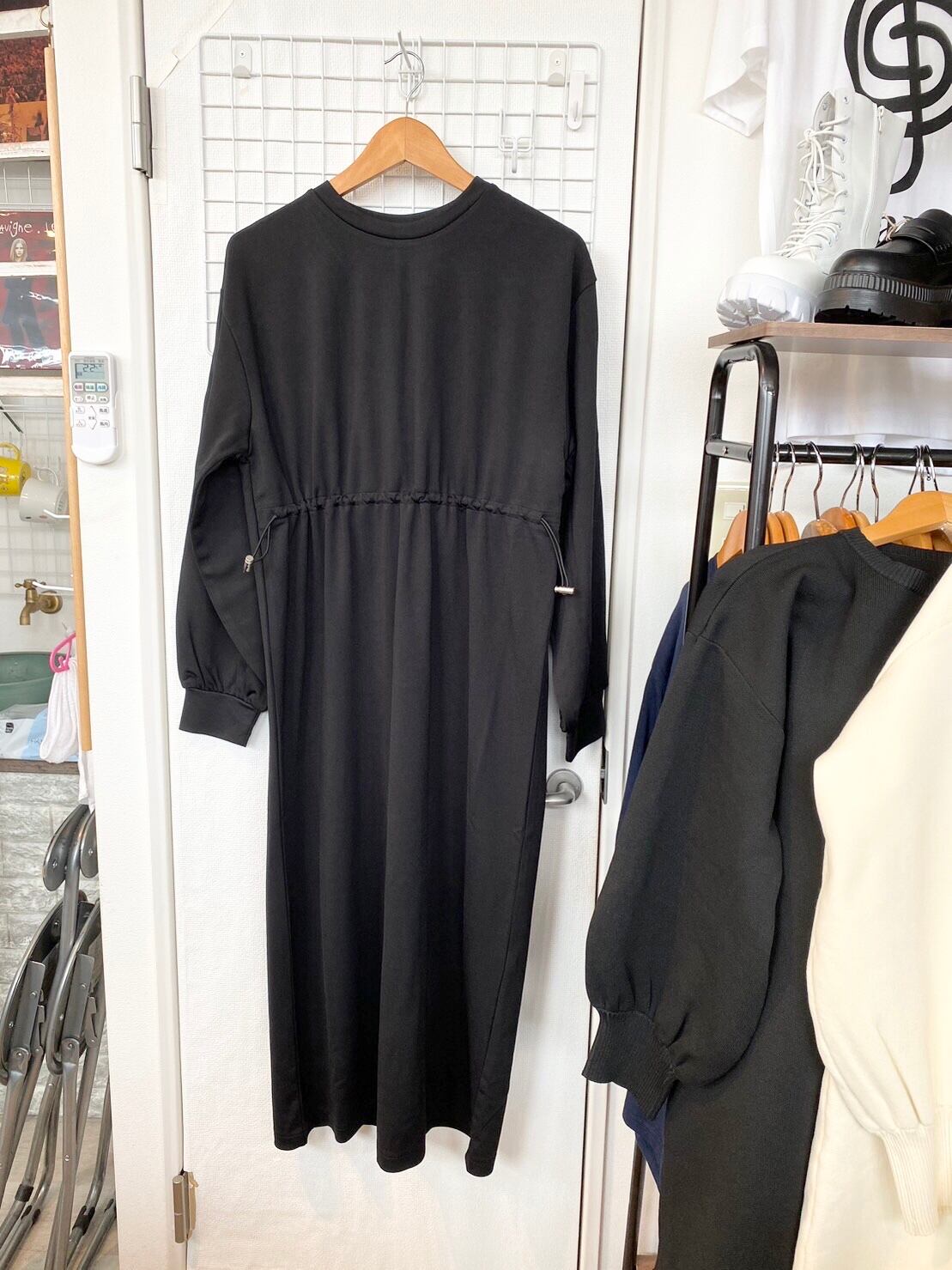 ウエストが調整できるカジュアルなワンピ。